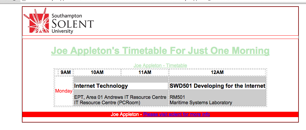 <p><span class="myname"> Joe Appleton - </span> <a href="http://www.solent.ac.uk"> Please visit solent for more info </a>